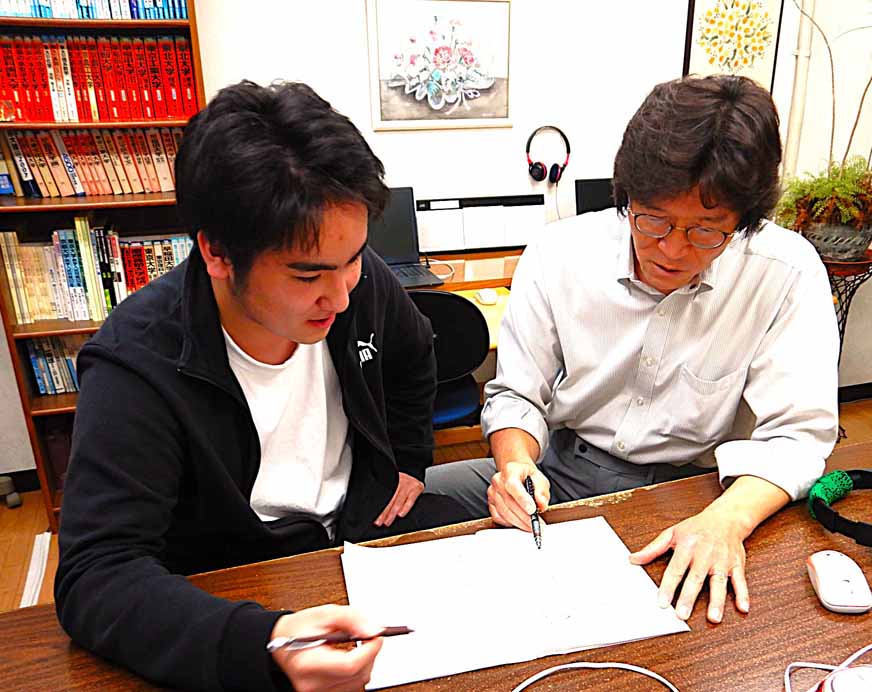 この数学塾には、大きな魅力が三つあると思います。まず一つ目は、この塾の親しみ易い雰囲気です。僕が数学塾に出逢えたのは4年前、ちょうど僕が中3の時でしたが、それまで塾に行ったことがなかったので、初めはとても緊張しました。しかし、河﨑先生はじめ、この塾の雰囲気のお陰ですぐになじむことができました。二つ目は、授業のわかりやすさです。この塾は少人数制なので、授業中わからない所があれば、その場で質問することができます。また、自習室で自習をしていて、解らないことがある時には、すぐに先生が教えてくれます。そして三つ目は、この塾がとても自由なことです。この塾では、課題を出されることがないので、自分の思うように勉強できるし、逆に何をすればいいのか分らない時は先生に相談することもできます。